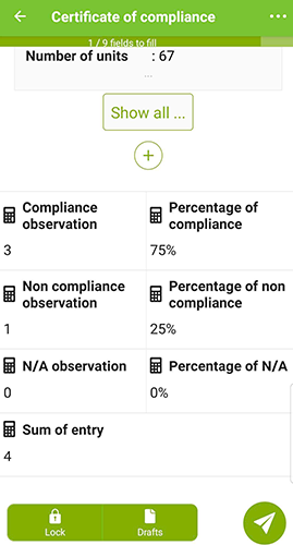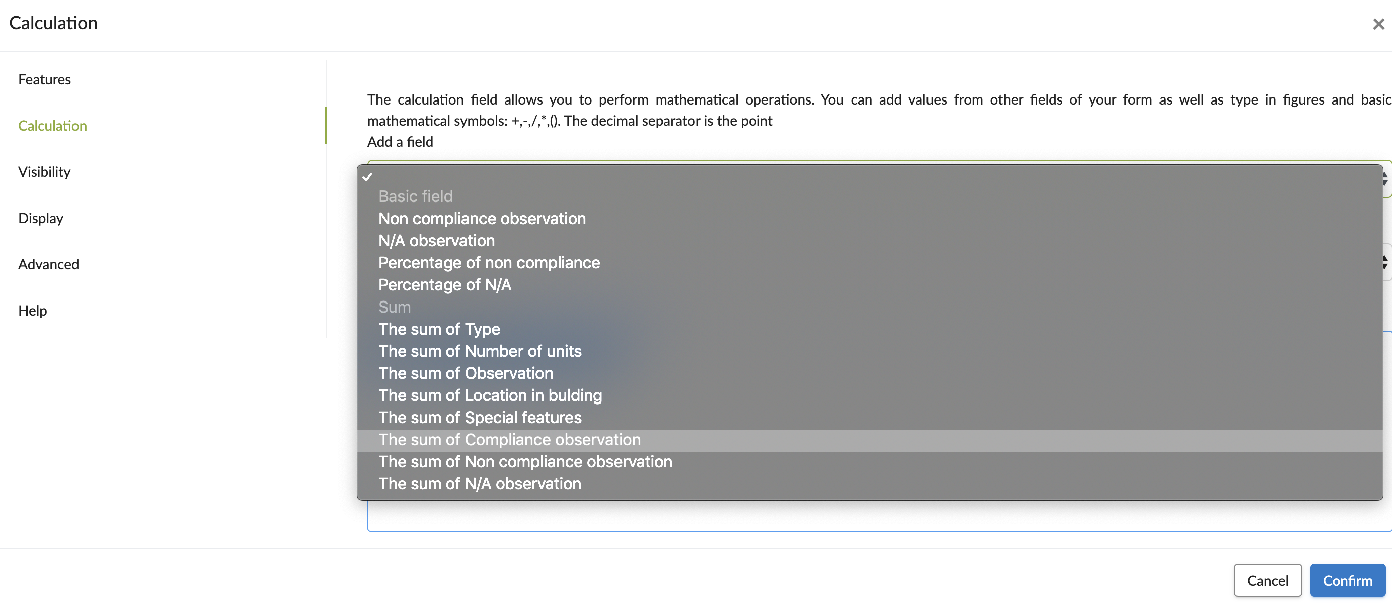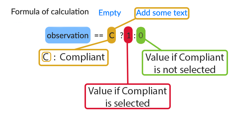 - In our example, we set it to calculate the conformity of our "Compliance observation" field.