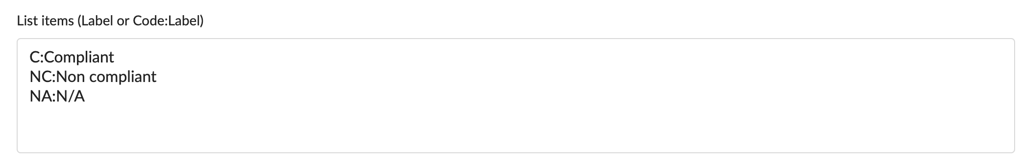 Once you set your choice or list field, you have to: Add a Calculation field for each item of your code list.